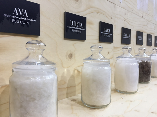 Klöfer和我们讲解到,OBB公司的鹅绒供应商遍布波兰、德国、加拿大、西伯利亚等优质羽绒产地,正式供样之前,羽绒供应商需要将符合采购要求的鹅绒样品寄到工厂实验室(欧洲羽绒羽毛局认证),检测人员会对鹅绒样品的蓬松度、含绒量、清洁度等重要指标进行测试。